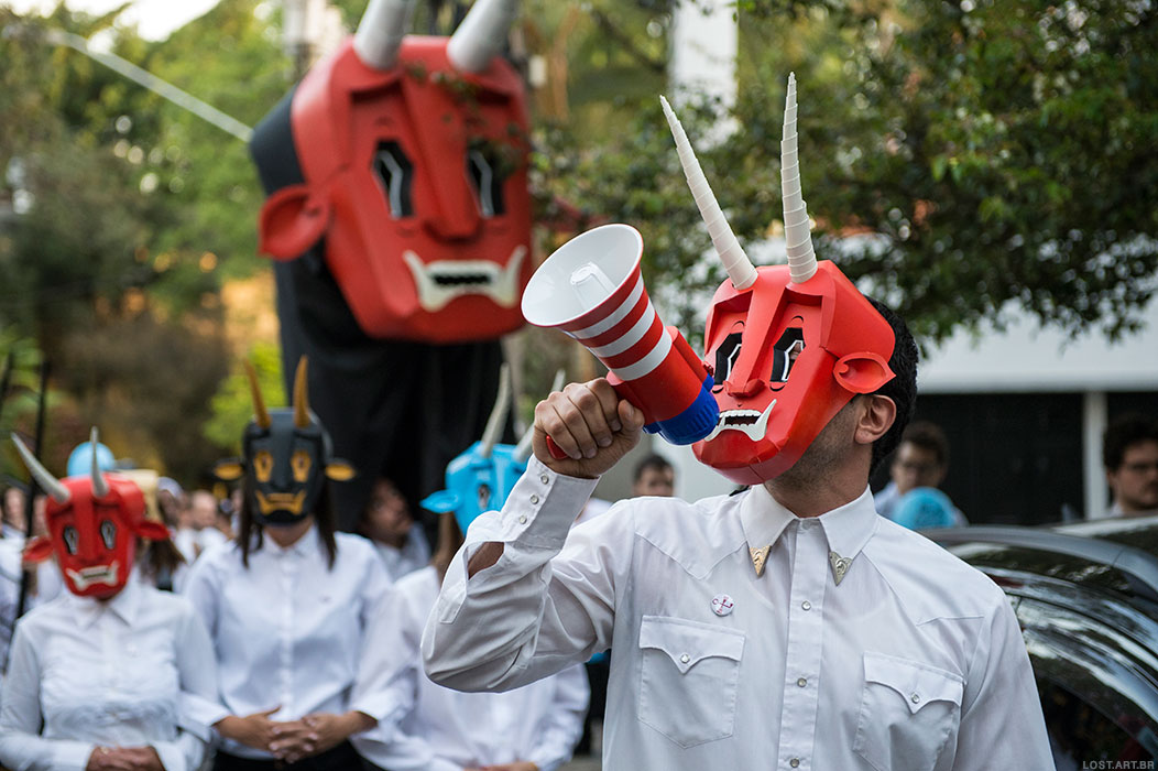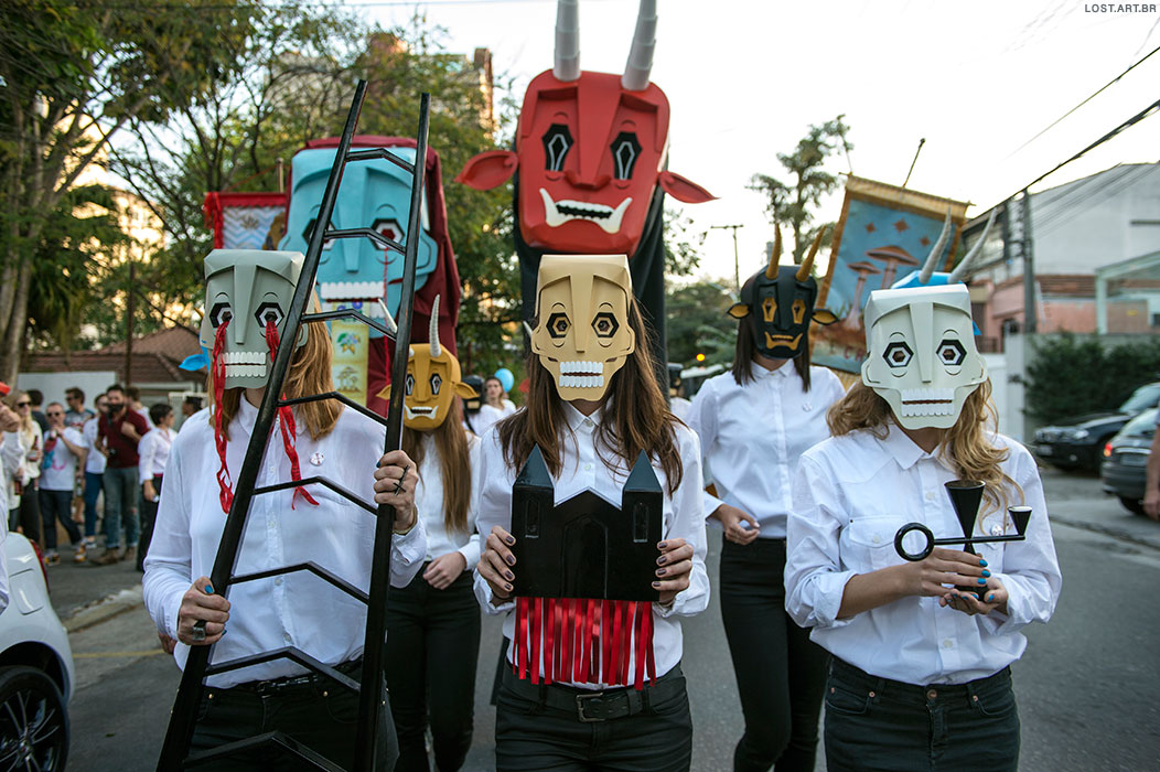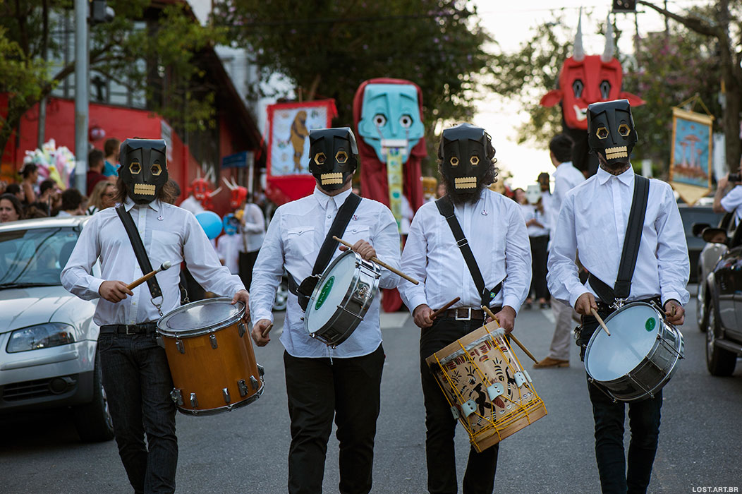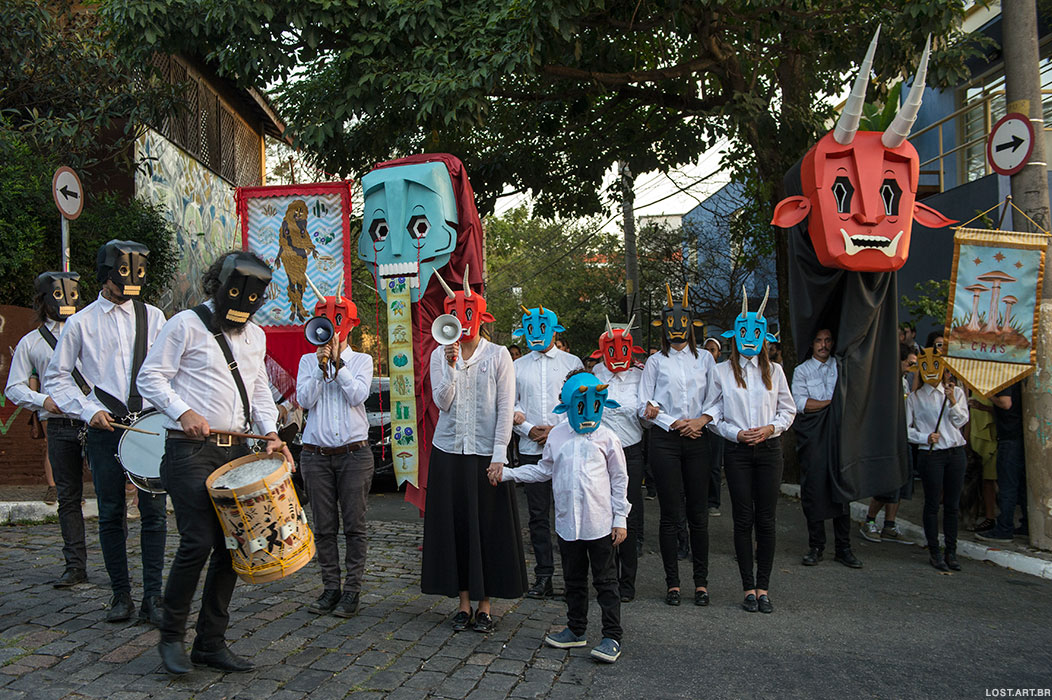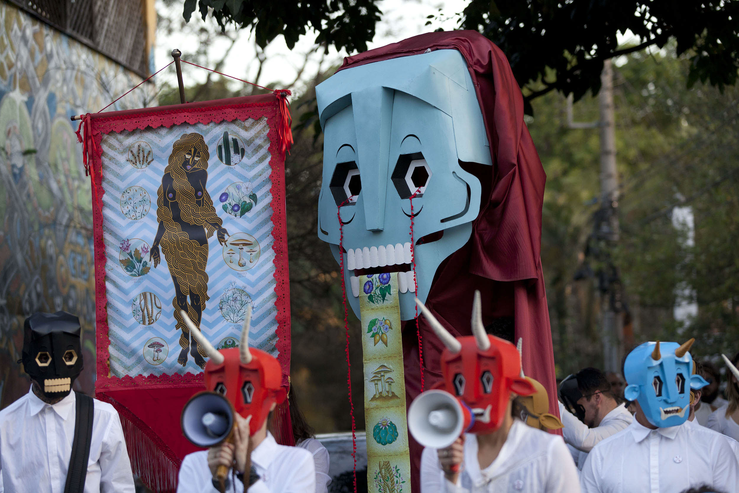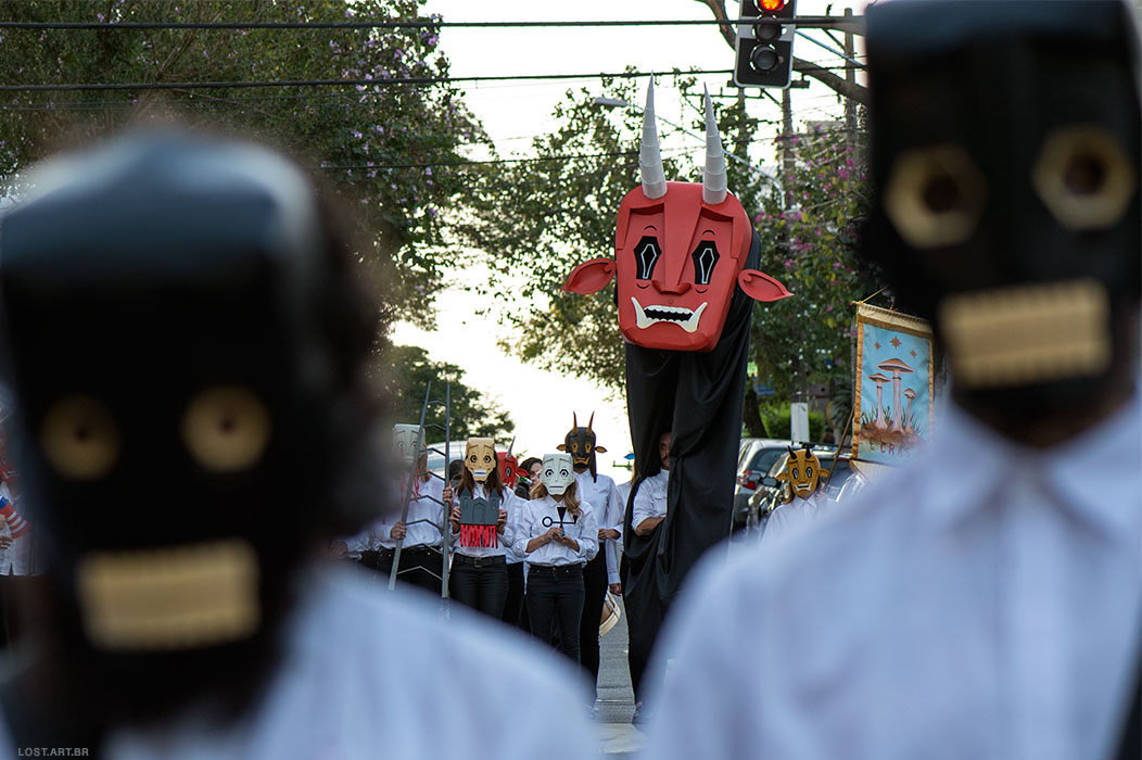 Besides the masked participants, there were banner carriers, gia¬¬nt puppets, and several allegories representative of shamanic elements and psychoactive composites.