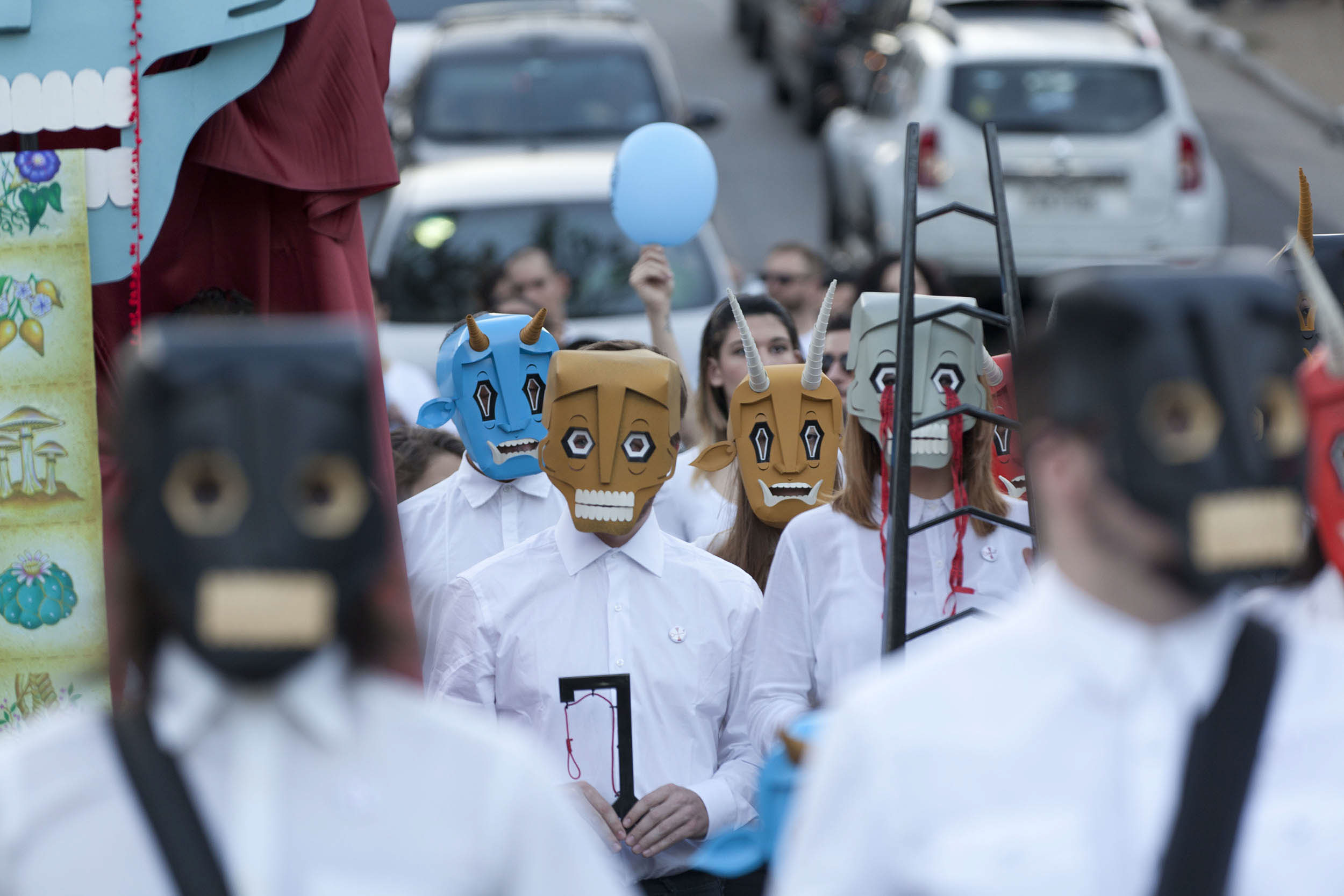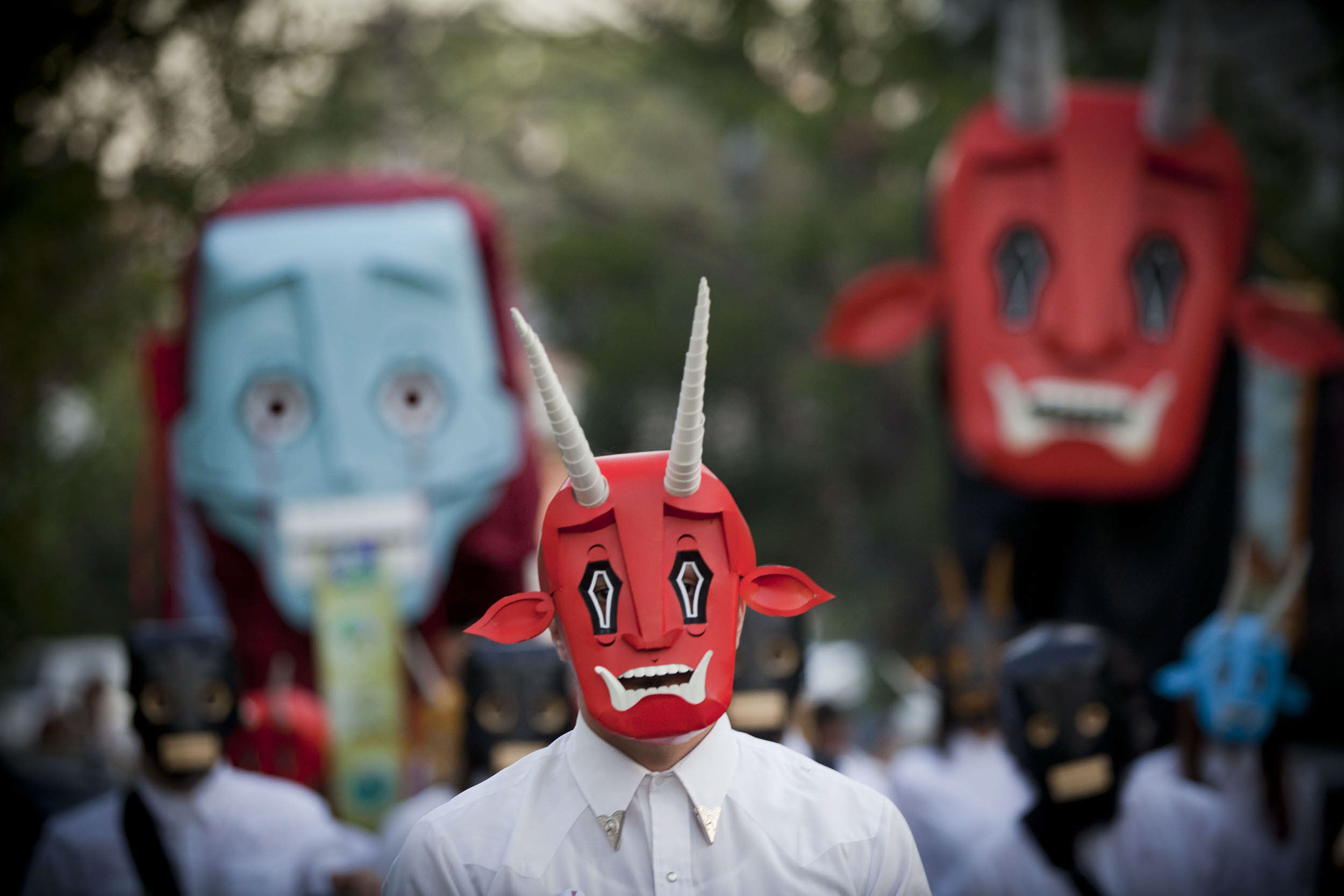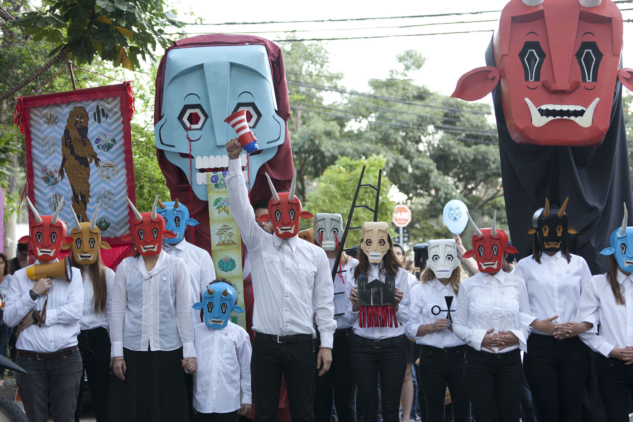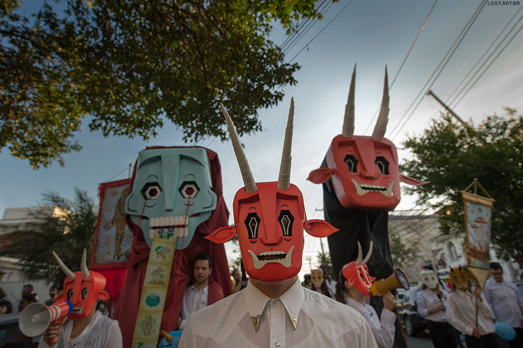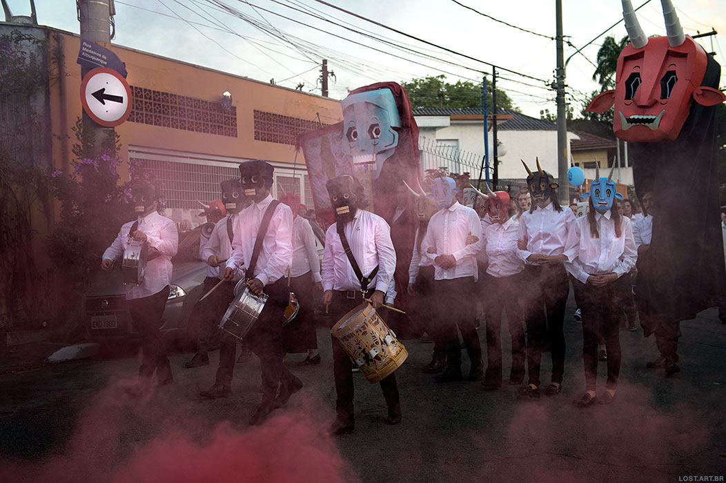 Besides the masked participants, there were banner carriers, gia¬¬nt puppets, and several allegories representative of shamanic elements and psychoactive composites.