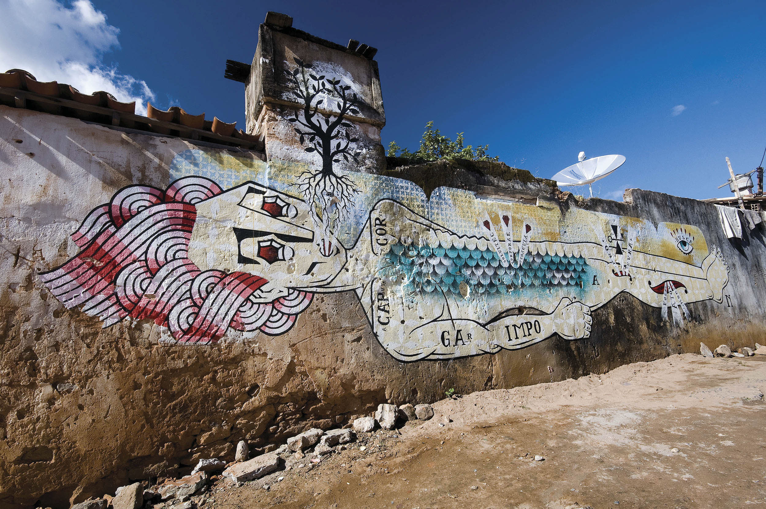 ( … ) ( the artist ) settled outside the center of town and intervened directly in the slums (Alto da Estrela, Tomba Surrão and Sem teto). His studio was located well outside the gentrified areas, atop a hill in Tomba Surrão, and living inside this marginality, Stephan recorded their stories, shared their spaces, and got invited to paint their homes.