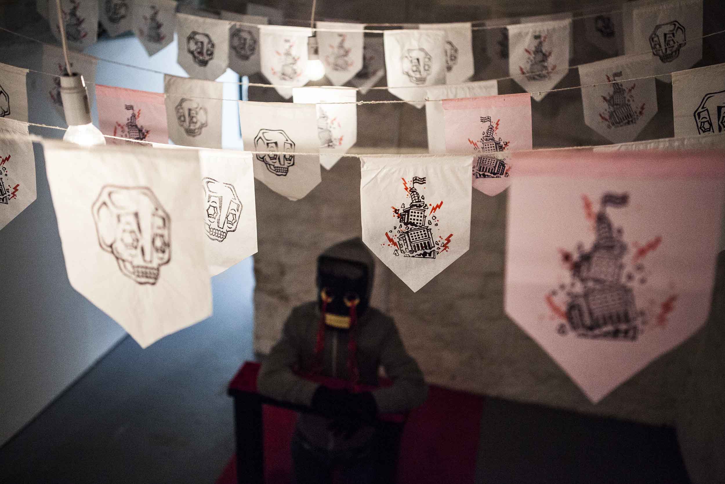 Nova Aparecida is the installation developed in Paris in the end of 2014, which comprises part of the works from Three Worlds series - FVTVRA RVPTVRA, including paintings, installations and actions in the public space, in which Stephan Doitschinoff uses the iconic universe to create the representation of an apocalyptic state, where São Paulo serves as an allegory of the excess of stiffness and control existing in the social behaviour of big cities around the world, such as São Paulo itself, Beijing, Moscow and Mexico City.